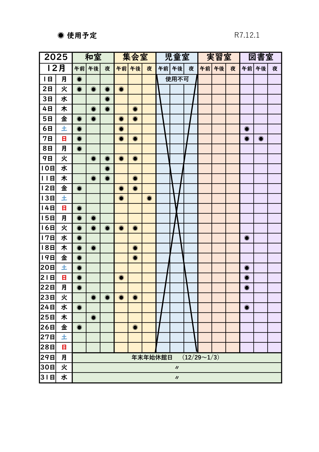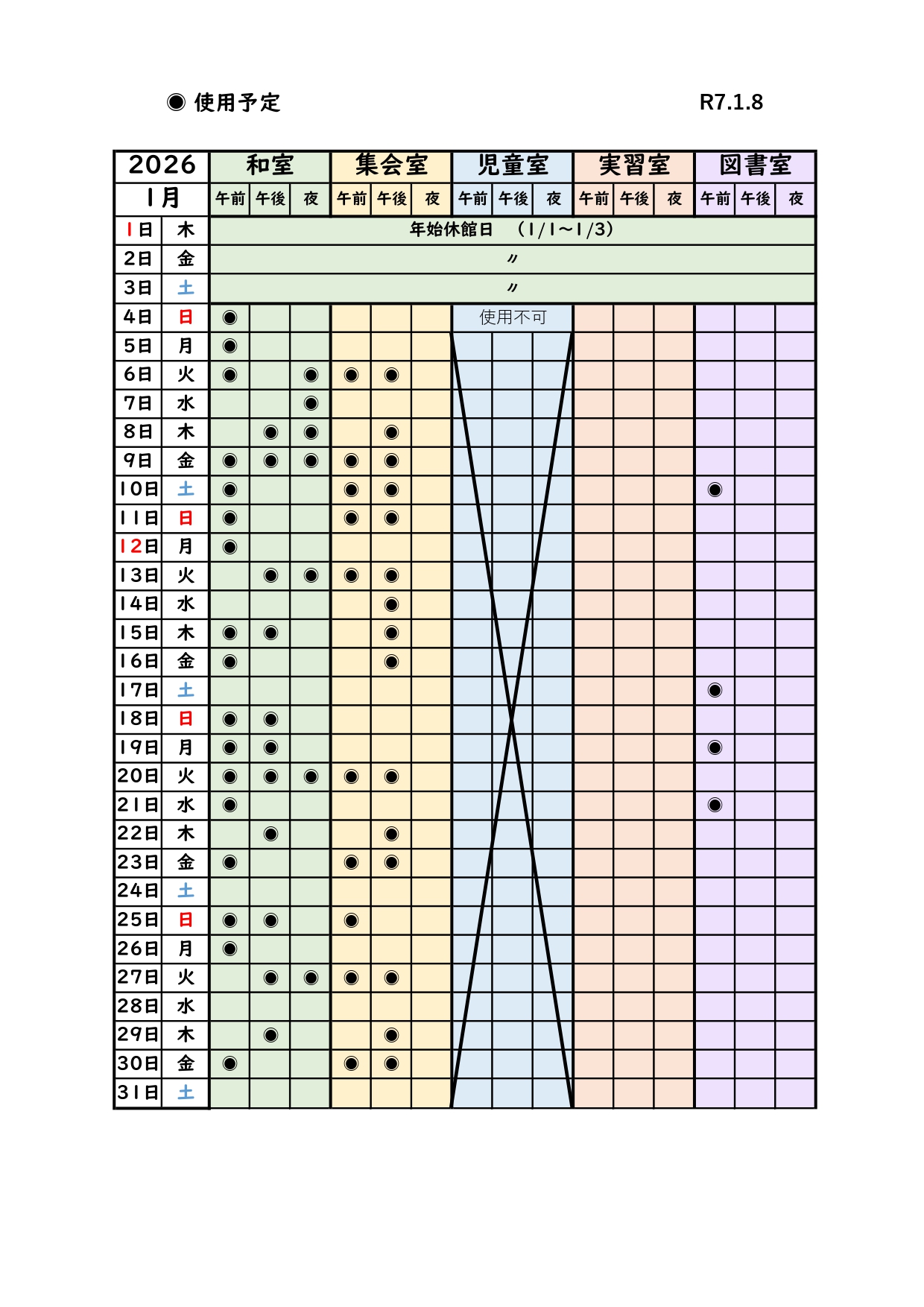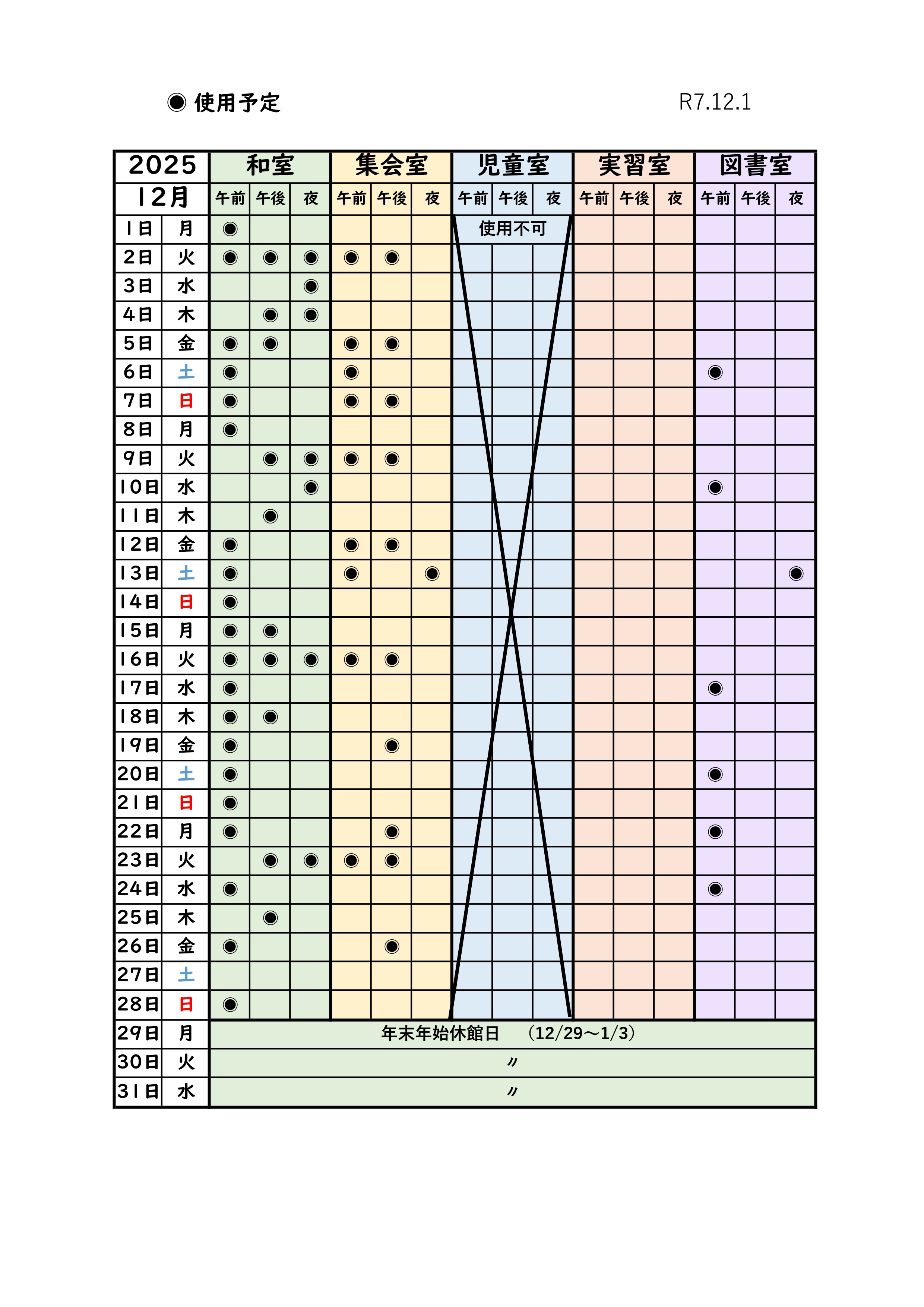 *最新の部屋の状況 最新の部屋の空き状況は電話でお問い合わせください。 (0532)45-9716 高師校区市民館 ( 月曜日~土曜日 12:30~17:30 ) *月別予約状況 *和室・集会室とその他の部屋で利用ルールが一部異なります。 詳しくは、スタッフにお問い合わせください。