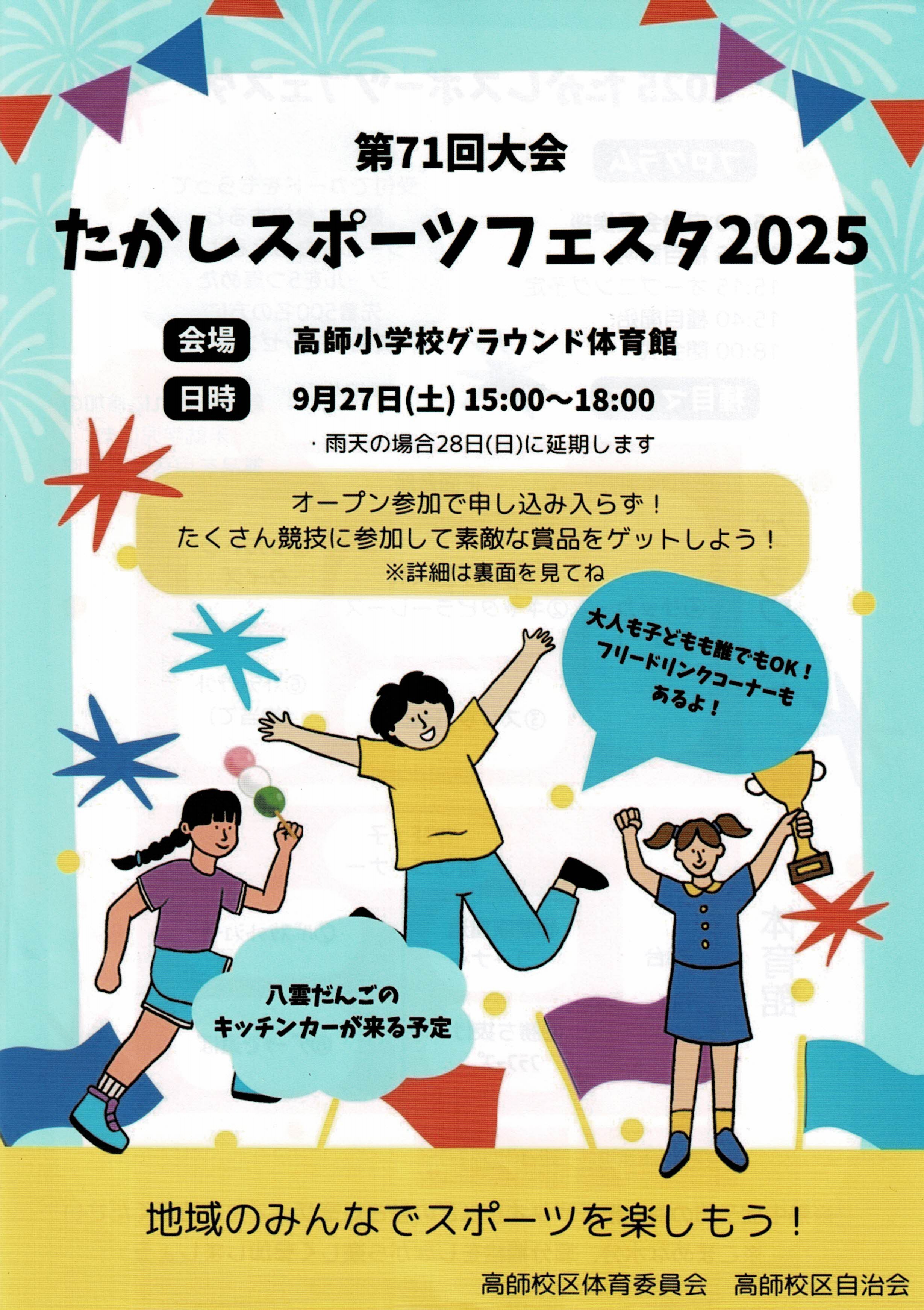 ・9月 『たかしスポーツフェスタ』 9/27(土)開催予定